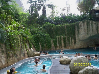ATRAKCJE PARKU: Las tropikalny; Wioska Tropikalna - oryginalne budynki z Bali, Borneo, Tajlandii i Samoa zapraszają do zwiedzania. Tutaj usytuowana jest większość restauracji oraz pasaż handlowy. Dodatkowo wioska tropikalna jest miejscem odbywania się dziennych show na scenie Wayang; Klub Tropino - atrakcje dla najmłodszych, mnóstwo powierzchni do wspinania się, skakania i innych zabaw; Zjeżdżalnie wodne - znajdujące się na 25 metrowej wieży są sensacją dla wszystkich klas wiekowych. Cztery różne zjeżdżalnie oferują różne możliwości, od łagodnego zjazdu rodzinnego po super-zjeżdżalnie z prędkością do 70 km/h; Balon - powietrznym balonem mogą jednocześnie wznieść się na wysokość 60 m 2 osoby; Morze Południowe - kąpiele dla całej rodziny. Morze południowe oferuje ogromną powierzchnię do pływania i na wszelkie inne wodne szaleństwa. Dla najmłodszych znajduje się tutaj specjalny brodzik. Na plaży pod palmami można zabawić się w "budowniczego zamków z piasku". Przy każdej pogodzie i prawie o każdej porze "prawdziwe" słońce gwarantuje naturalną opaleniznę; Laguna Bali - prawdziwą radość kąpieli zapewnia Laguna Bali. Tutaj czeka na 1200 m2 pełnych romantycznej atmosfery. Sztuczna rzeka, podziemne zjeżdżalnie wodne i jacuzzi gwarantują świetną zabawę i relaks. Piasek, drzewa i palmy okalają brzeg, balijskie chaty, groty i typowa małpia skała przeniosą Państwa na Bali, na Wyspę Bogów. Tam gdzie Laguna graniczy z lasem tropikalnym, dzięki grotom i wodospadom można się tu poczuć jak w prawdziwej dżungli. Wieczorami i nocą basen Laguny zamienia się w romantycznie oświetloną krainę, przepełnioną magiczną grą kolorów; Mini golf - gra w mini golfa w skalnej krainie. Na sztucznej trawie o intensywnej zieleni, znajduje się 18 dołków z trasami o różnym stopniu trudności. Wspaniała zabawa dla całej rodziny; Największy tropikalny kompleks wellnes i saun w Europie - entuzjaści sauny i wellnes mogą skorzystać z różnych rodzajów sauny. Ofertę uzupełnia cała paleta masaży i zabiegi kosmetyczne; Show - obie wyspy na "Morzu Południowym" przeistaczają się wieczorami w jedne z najoryginalniejszych scen artystycznych, spektakle odbywają się w dzień i wieczorem; Sport na plaży; Program dla dzieci; Bary i restauracje